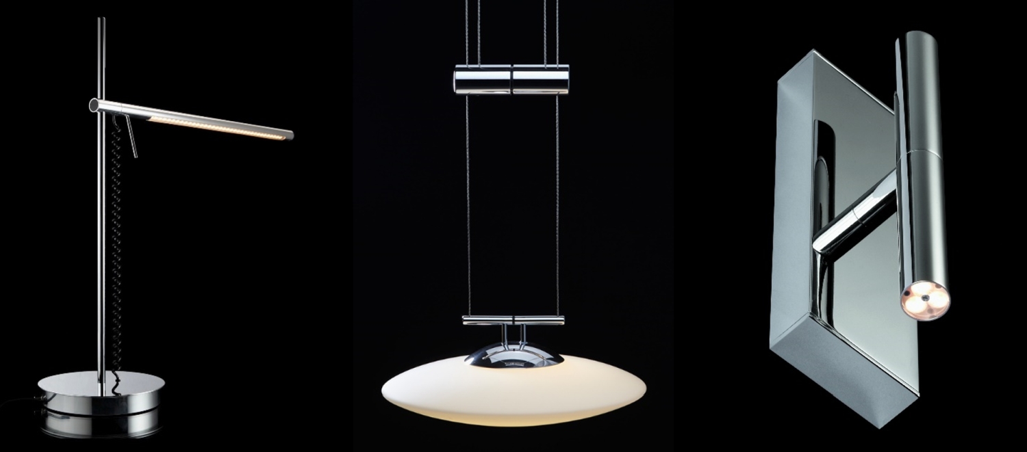 Die Licht Design Manufaktur (LDM) steht für puristisches Design mit Konzentration auf das Wesentliche – ein bisschen Glamour darf bei den Pforzheimer Lichtexperten dennoch nicht fehlen. Auf Hochglanz poliert, sind viele der Leuchtenklassiker mit glänzender Oberfläche erhältlich. Allen voran die LUNALED – seit mehr als 20 Jahren ist die Pendelleuchte aus poliertem Chrom ein fester Bestandteil im LDM-Portfolio und ein wahrer Publikumsliebling. Kein Wunder also, dass auch die Leuchtenserien KYNO, DROP, SANTO, STUDIO, ECCOLED und PURE in den Ausführungen Aluminium poliert oder Hochglanz-Chrom standardmäßig produziert werden.