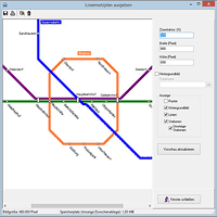 Für die Ausgabe kann der Liniennetzplan in die gewünschte Größe skaliert werden. Da der Liniennetzplan dabei komplett neu gezeichnet wird, können die sonst oft entstehenden Qualitätseinbußen – beispielsweise unscharfe Ränder – verhindert werden.