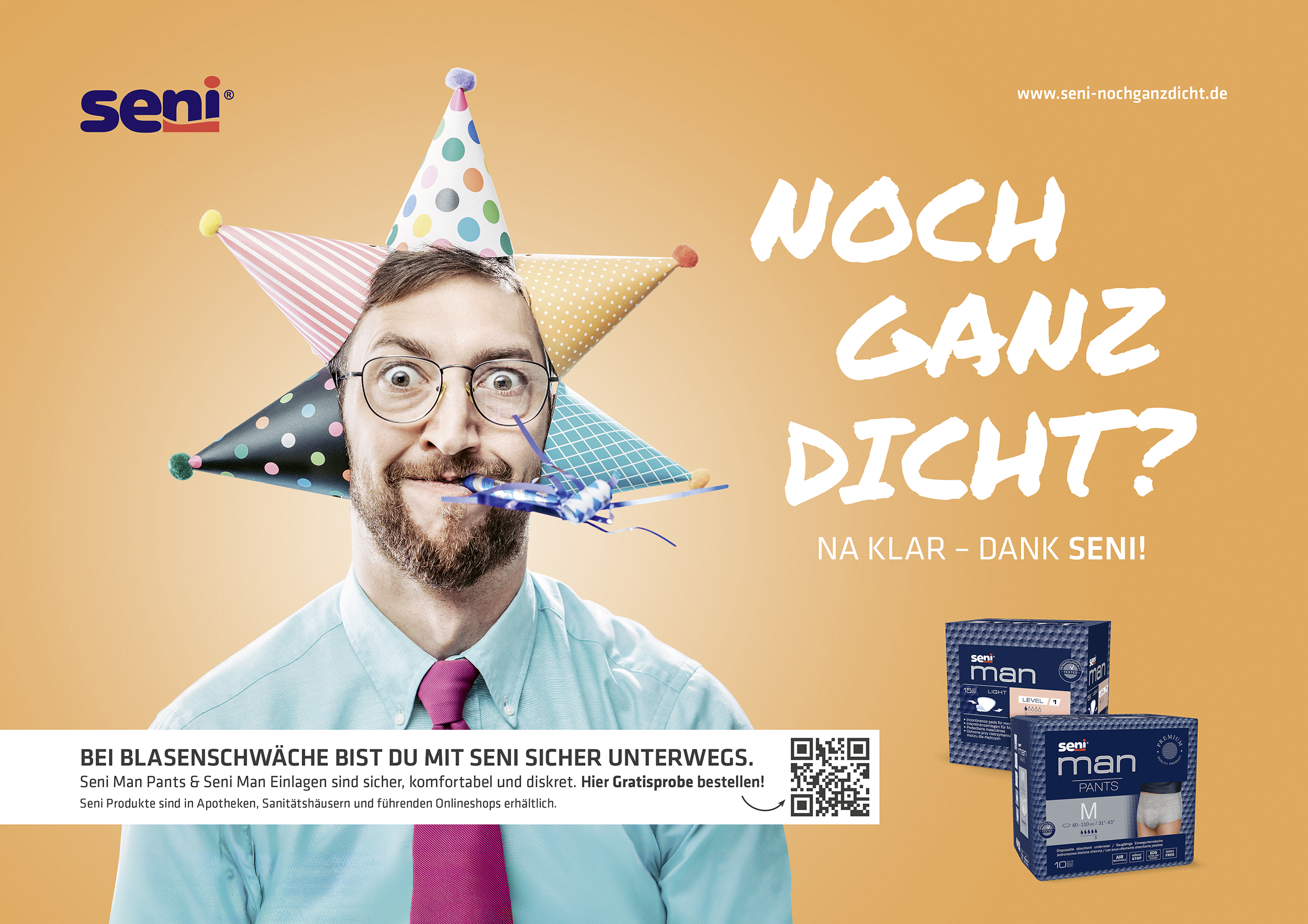 Biesenthal, 27. Februar 2025 – SENI, einer der führenden Anbieter für Inkontinenz- und Körperpflegeprodukte, ist für den German Brand Award 2025 nominiert. Mit dem Preis würdigt der Rat der Formgebung jedes Jahr vorbildliche Markenführung, nachhaltige Kampagnen und außergewöhnliche Marketingprojekte. Der German Brand Award zählt zu den bedeutendsten Auszeichnungen für Branding und Marketing in Deutschland. SENI ist mit der auffälligen und humorvollen Werbekampagne „Noch ganz dicht?“ in der Kategorie „Excellence in Brand Strategy and Creation“ im Bereich Print nominiert.